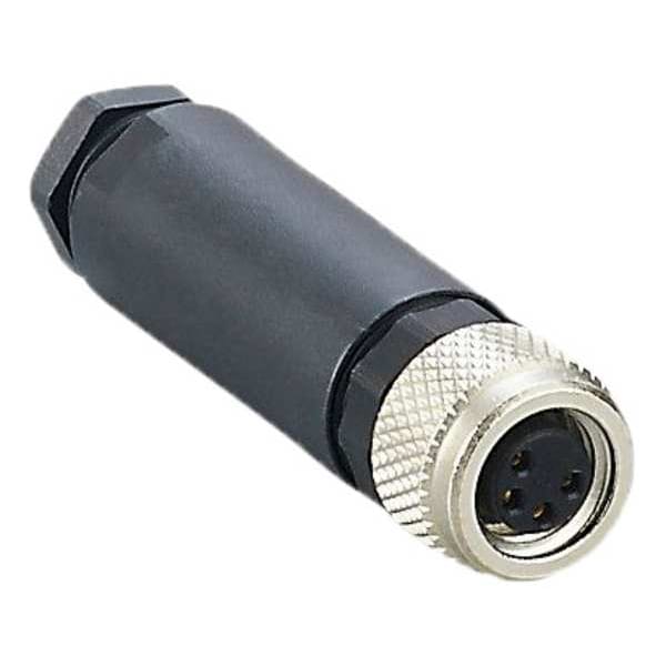 M8 Circular Connector, Mounting Style Female Thread, Application DC Power, Gigabit Internet, Sensors, Signal, Number of Poles 4, Coding A, Connection Type Gold-Plated Contacts, Thread Size M8, Voltage Rating 30V AC, 30V DC, Nominal Voltage 30V AC, 30V DC, Locking Style Screw Connection, Housing Material Nylon, Polyester, Includes Nut Yes, Connector Body Type Socket, Cable Outside Diameter 5 mm, Connector Orientation Straight, Maximum Operating Temperature 185 Degrees F