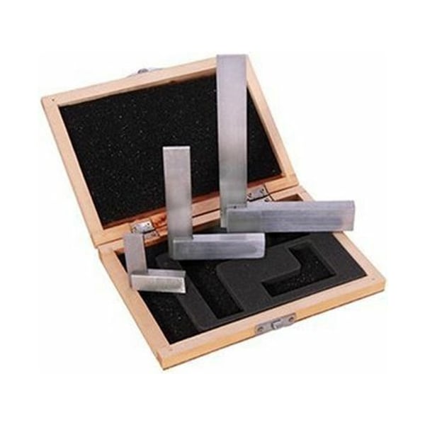 Used for layout or test square work. Includes 2", 4", 6" (Beams are 1-1/2", 3", 4"). Made of finest hardened Steel. Designed for precision layout and measurement work. Squares are true right angles both inside & outside. Beams and blades are ground and lapped for parallelism. Length of blade is measured from corner edge of beam to end of blades. Protective case included.