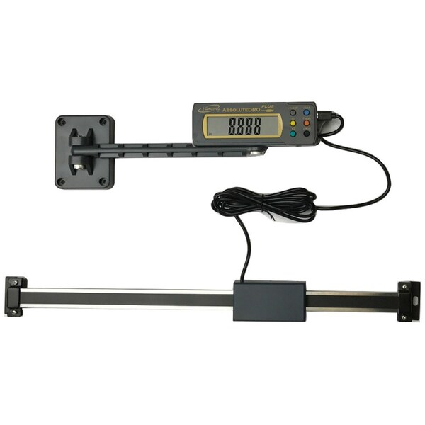 iGaging's Absolute Origin DRO uses HIGH ACCURACY ABSOLUTE memory technology. It keeps track of its origin position once set. Whenever the DRO turned on, the easy-view super large LCD displays the actual sensor position ready to start measuring. It's not necessary to reset zero. The measuring speed is unlimited. High quality surface finish for extra smooth slider movement. iGaging Absolute Measuring Technology. The DRO will remember the origin you set and recognize it every time the unit is powered on. Super Speed Measurement - High Accuracy. Memorize Origin Zero. Rule made of HARDENED STAINLESS STEEL to promote high accuracy and repeatability. Stackable readout panels for any number of panels for multiple axis. Super Large LCD. Display Inch/Metric/Fractions. Preset Function. Resolution: 0.0005"/0.01mm. Displays are equipped with magnets to allow easy attachment to steel surfaces. Remote cable length: 76". Includes an articulating arm that allows stacking of multiple displays for any number of axis. Includes 2 different types of mounting brackets for flexibility of installation. Includes 2 sets of Batteries.