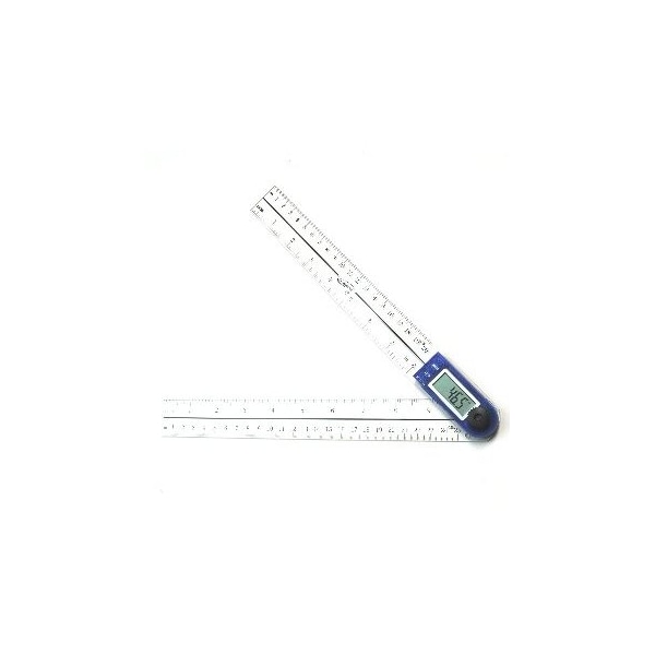 Blade Sizes: 8'' front / 10'' rear. Range: 0-360 degree. Resolution: 0.05 degree. Accuracy: +- 0.2 degree. See-through Poly blades. Strong locking nut. 0-360 degree full measurement. Hold and reverse reading feature. 3V CR2032 Battery. Easy zero setting. Great for medical application.