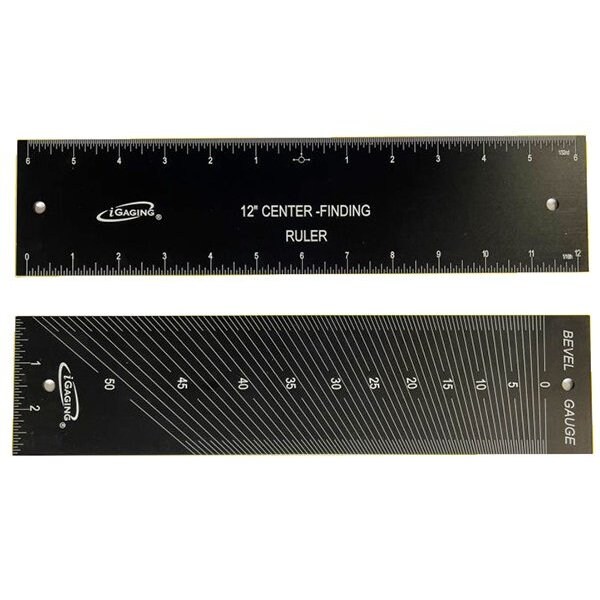 Ruler sides a center rule on top in 32nds and left to right on the bottom in 16ths. Bevel gauge side has an angle scale from 0 degree to 50 degree with 1/2 degree marks and 1/4 degree dots for easy reading and 3'' rule one the end. Lines and numbers are engraved in white. Size: 12.5'' x 3''. Aluminum construction with black anodized finish.