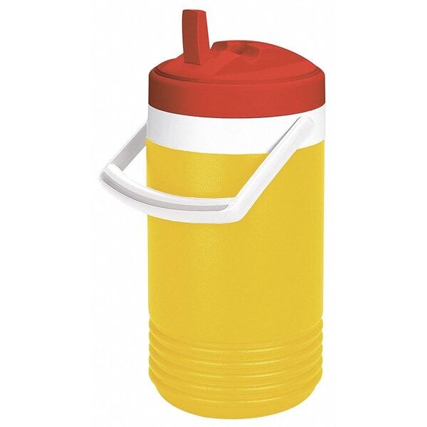 Beverage Jug, Beverage Jug, With Wheels No, 1.0 gal, Exterior Height 13 5/8 in, Exterior Dia. 7 5/8 in, Plastic, Ice Retention Up to 2 days, Body Color Yellow, Lid Color Red