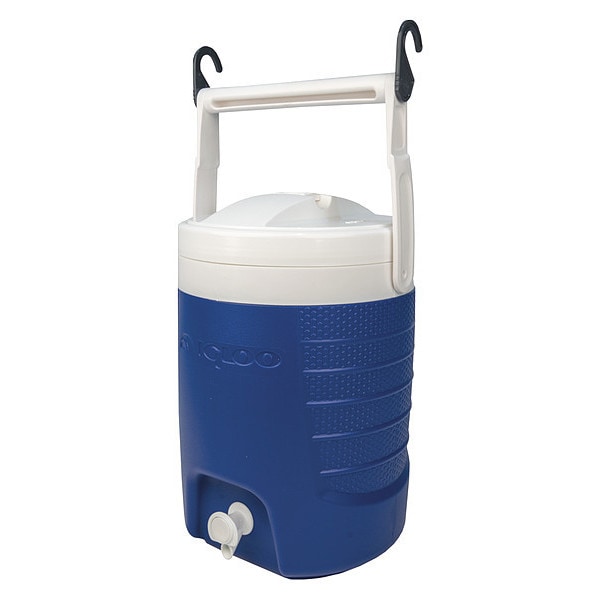 Beverage Cooler, Beverage Dispenser, With Wheels No, 2.0 gal, Exterior Length 10 in, Exterior Width White, Exterior Height 13.78, Exterior Dia. 9 3/4 in, Plastic, Body Color Majestic Blue, Lid Color White