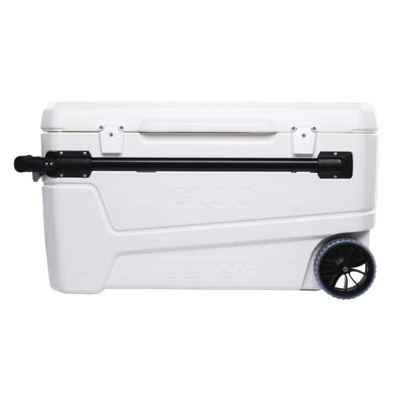 Chest Cooler, Chest Cooler, With Wheels Yes, 110 qt, Exterior Length 39 11/16 in, Exterior Width 18 5/8 in, Exterior Height 19 3/4 in, Plastic, Body Color White, Lid Color White, Number of Cans 168