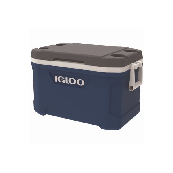 Latitude, 52 QT, Indigo Blue, Cooler, Convenient Swing Up Handles For Easy Loading InOut Of Vehicle, Tie Down Points On The Lid Handle Brackets To Aid With Secure Transport, Handle Brackets With A Bungee Cord From Side To Side To Haul More Gear, 4 Self Draining Drink Holders Keep Your Cold Ones In Arms Reach, Mobile Device Stand With Tall Backstop Allows You To Park Phones Tablets Off The Ground For Easy Access Viewing, Cool Riser Technology, Elevated Design Improves Cooling Performance