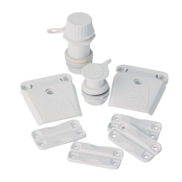 Universal design of hinges and latches make them interchangeable with all original and current igloo hinges and latches. Kit includes: 1 triple snap drain plug for 25 to 70 Qt. Igloo coolers 1 threaded drain plug for 50 to 165 Qt. Igloo coolers 2 pair of hinges (4 each) for 25 to 165 Qt. Igloo coolers 2 latches and 2 latch posts for 50 to 165 Qt. Igloo coolers and 22 screws.