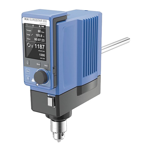 Overhead Mixer, Volume 100 L, Max. Viscosity 100,000 cps, Maximum Torque 200 N-cm, Operating Speed 6 to 2000 rpm, Mixing Speed Type Variable, Voltage 100/115V, Through Shaft Yes, Overall Height 11 11/16 in, Overall Length 9 3/32 in, Overall Width 3 19/32 in, Shaft Dia. 16 mm