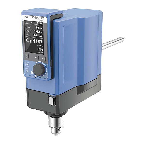 Overhead Mixer, Volume 150 L, Max. Viscosity 100,000 cps, Maximum Torque 400 N-cm, Operating Speed 6 to 2000 rpm, Mixing Speed Type Variable, Voltage 115V, Through Shaft Yes, Overall Height 13 19/32 in, Overall Length 10 19/32 in, Overall Width 5 11/16 in, Shaft Dia. 16 mm