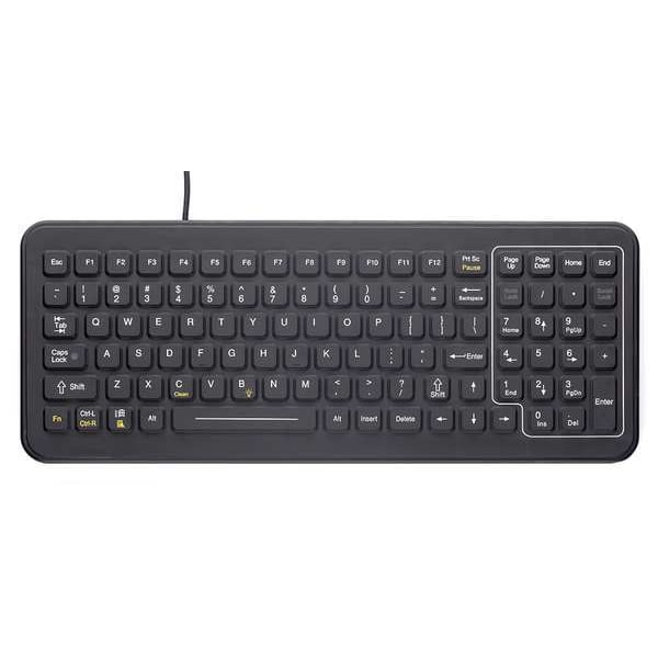 Keyboard, Corded, Ergonomic Design No, Compatible With Linux(R), Windows(R), USB Connector Type, Black, Cable Length 6 ft, Height 39/64 in, Length 14 15/16 in, Width 5 57/64 in, Features Industrial Silicone Rubber Keypad, Meets NEMA 4X (IP65) Specifications, Backlit