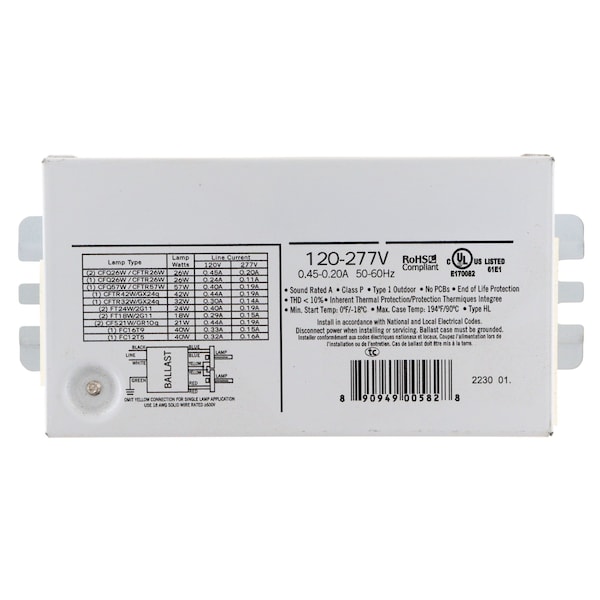 Fluorescent Ballast, Replacement For Prescolite, Puv-22Rsd-Eol-Li