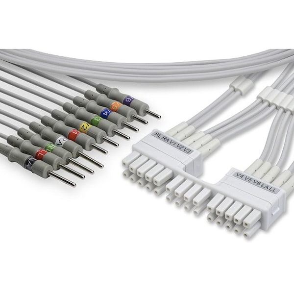 Replacement EKG leadwires designed specifically for the Mortara ELI 250C electrocardiograph system. These needle-type leadwires are essential consumable components that connect patients to the ELI 250C's acquisition module, facilitating accurate 12-lead ECG signal transmission. The leadwires are engineered for compatibility with both the AM12 and WAM wireless acquisition modules, ensuring seamless integration with your existing Mortara diagnostic equipment. These replacement leadwires support the ELI 250C's real-time 12-lead ECG preview capability and enable the device's internal memory function, which stores up to 60 ECG readings for patient record management. The leadwires feature a lead fail indicator system that alerts operators to connection issues, maintaining diagnostic integrity during patient testing. Constructed for durability and repeated clinical use, these leadwires are replaceable components designed to maintain consistent signal quality throughout the lifespan of your EKG machine. Ideal for hospitals, diagnostic laboratories, cardiology clinics, and medical facilities utilizing Mortara ELI 250C systems, these replacement leadwires ensure continuous operational capability without requiring downtime for equipment repairs. They work in conjunction with the system's remote control functionality and are compatible with both standard and wireless acquisition configurations. Healthcare facilities can maintain adequate inventory of replacement leadwires to minimize service interruptions and ensure uninterrupted patient diagnostic capabilities.