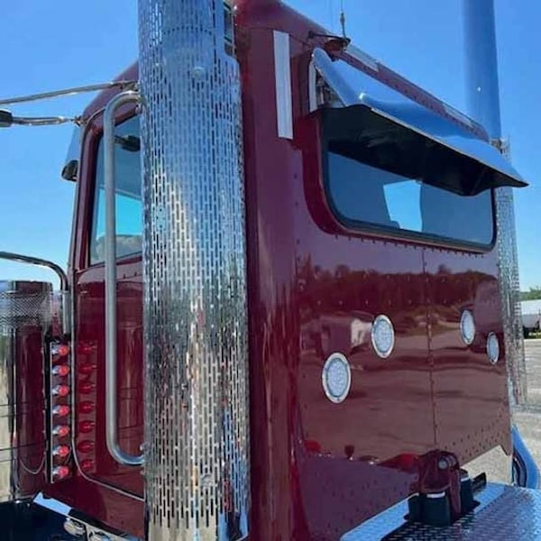 Replacement For Peterbilt 389 Year 2023 Stainless Steel Rear Window Visor W/ 10In Drop