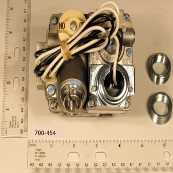 This replacement gas valve is a 120V AC line voltage control unit from the Robertshaw Unitrol 700 Series, engineered for standing pilot applications in gas heating systems. Designed for reliability and precision in commercial and residential furnace installations, this valve combines solenoid and diaphragm technology to deliver dependable gas flow regulation. The unit operates on standard 120VAC power at approximately 4 watts, making it compatible with most control systems. It accommodates natural gas, LP (liquefied petroleum), manufactured gas, mixed gas, and LP/air mixtures, providing flexibility across diverse fuel types. The valve features 1/2in x 3/4in or 3/4in FPT inlet and outlet connections in a straight-through configuration, with pressure regulation set at 3.5in water column for natural gas applications. Capacity ranges from 6,700 to 160,000 BTU/hr for natural gas and 12,000 to 226,000 BTU/hr for LP applications, with peak ratings reaching 240,000 BTU/hr. This makes it suitable for small to large-scale heating installations. The diaphragm design ensures smooth modulation and stable pilot ignition control, while the solenoid mechanism provides reliable shutoff capability. Ideal for HVAC technicians, heating contractors, and facility managers seeking OEM or direct replacement components, this valve delivers the precision control and durability expected in professional-grade furnace systems. Its proven Robertshaw engineering makes it a trusted choice for maintaining system performance and compliance with industry standards.