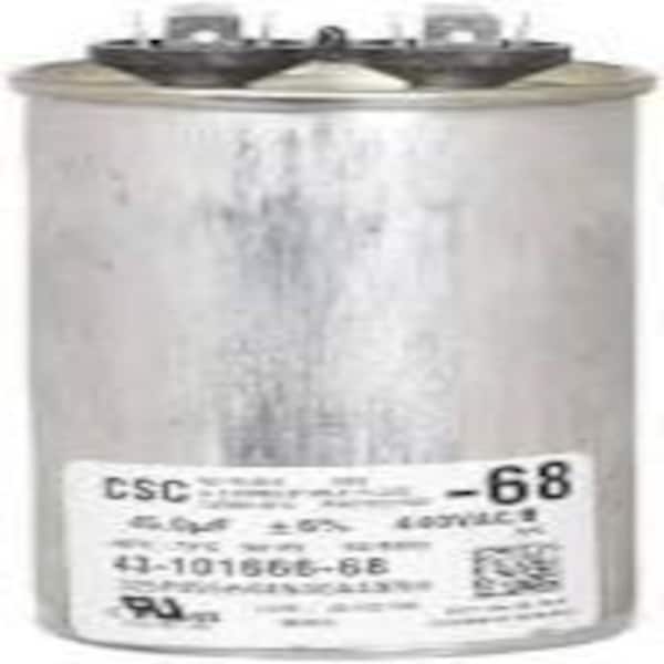 The RHEEM 43-101666-68 is a precision-engineered 45/440 uF single round run capacitor designed for reliable operation in single-phase motor applications across HVAC and industrial systems. This essential component provides critical starting torque and maintains voltage stability to ensure consistent equipment performance in demanding environments. The capacitor features a round, single-section design rated at 440 VAC with 50/60 Hz frequency capability, making it suitable for a wide range of commercial and industrial installations. UL 810 certified to 5,000 AFC (amperes fault current), this component meets stringent safety and performance standards for dependable long-term operation. The model 43-101666-68 (equivalent to 4310166668) is a direct replacement for Rheem-branded equipment, offering OEM-quality performance and compatibility. This capacitor is ideal for HVAC technicians, facility maintenance teams, and industrial equipment operators seeking reliable motor starting and run capacitor solutions. Whether replacing worn components or upgrading existing systems, this certified capacitor delivers the electrical stability and starting performance required for uninterrupted equipment operation.