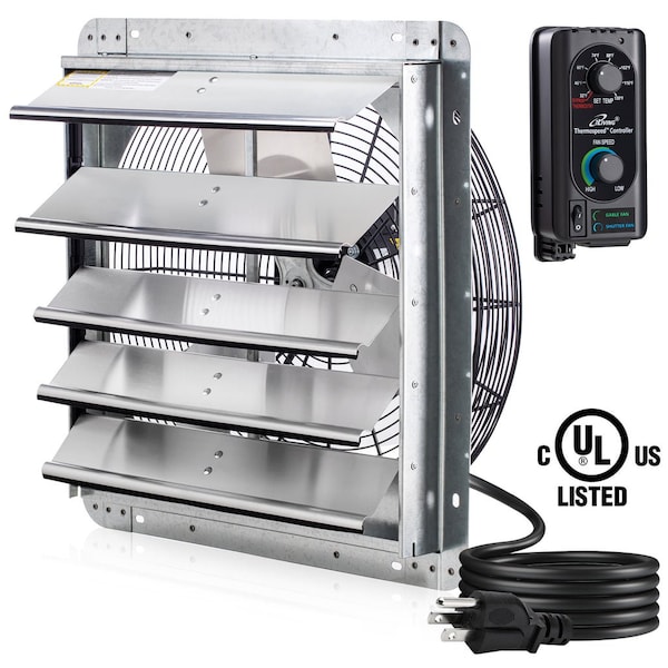 - •BUILD TO LAST - Industrial grade galvanized steel frame with aluminum shutters and fan blades, reliable direct drive motor, Variable speed, UL certified, Noise Level < 65dB. Ideal for warehouse, garage, greenhouse, workshop exhaust and dust extraction. Corrosion-resistant with OSHA compliant wire guards. UL Listed with speed controllable, permanently lubricated motor
