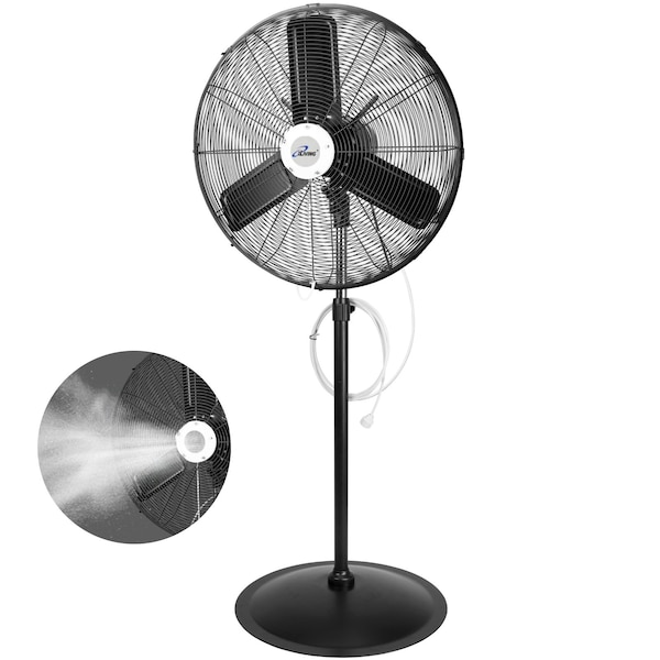 Cool off from the summer blaze with iLIVING 30" Pedestal Outdoor Oscillating Misting Fan. Simply connect the misting kit to a common garden hose, and you can turn a hot and dry spot into the coolest places for all your outdoor gatherings. BBQ in the backyard, Pool side party, relaxing in your patio, or outdoor restaurants, the iLIVING misting fan will provide a fresh and gentle coat of cool mist to take the heat away.The iLIVING 30" Indoor and Outdoor Oscillating Pedestal Fan with misting kit is built with a totally enclosed ventilated 2-speed motor, with 1/3 HP. The Aluminum fan blade are precisely balanced for optimal performance with minimum vibration. Pedestal fan is height adjustable from 58"-65"H. Fans come with 9.8' GFCI Type Plug. Black Powder Coated Zinc Plated Grille- UV Resistant, rated for outdoor use. Grille with Misting feature mounts easily and connects to a standard garden hose. ETL and cETL Listed and conforms to UL507 Standard. 1 Year Limited Warranty.