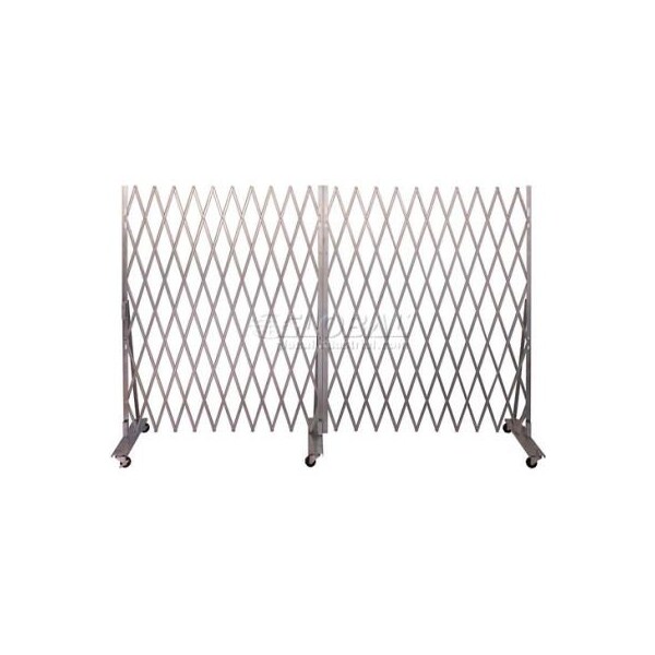 Expandable folding security gates folding security gate is made of galvanized steel for corrosion resistance. Steel rivets on 14 gauge steel web gates allow easy folding and expanding. Gate offers a total of up to 12'l when open using two 6'l webbing sections. 12 gauge angled steel axle posts are 1-1/2 x 1-1/2 and reinforced for extra strength. Gate includes three 28d axles that offer 4 sweep clearance. Axle posts on each end include a locking bar and padlockable hasp lock sold separately to secure gates in folded position. Moves easily on six 3 rubber casters.