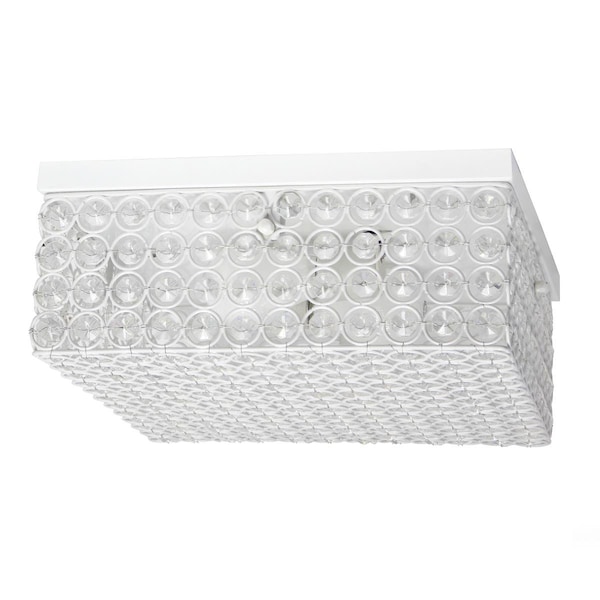 12 in. Elipse Crystal 2 Light Square Ceiling Flush Mount, White