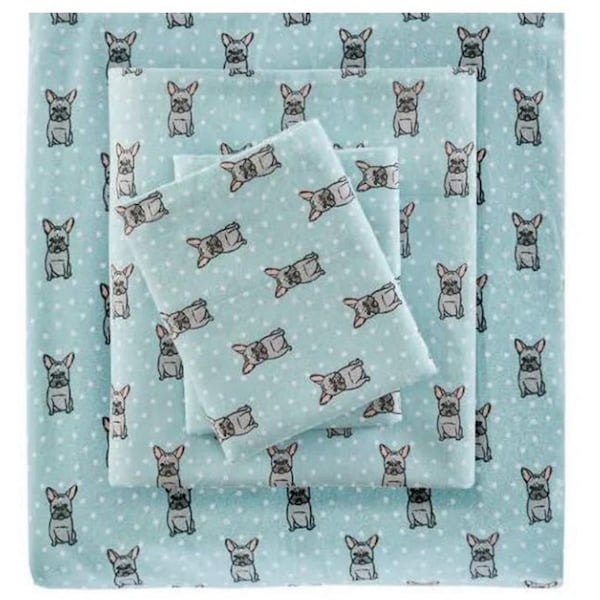 Cozy Flannel Sheet Set, Aqua French Bulldog - Full