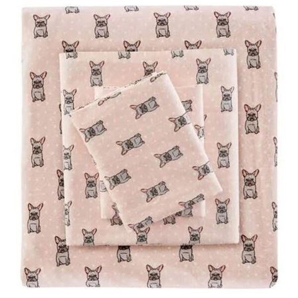 Cozy Flannel Sheet Set, Pink French Bulldog - King