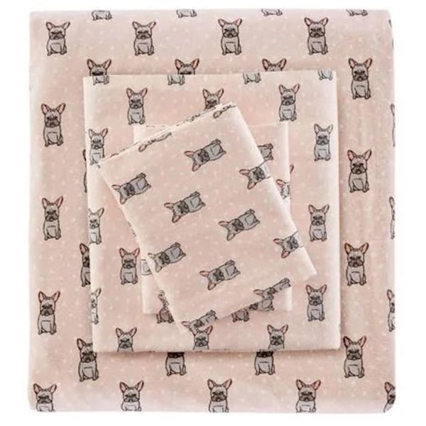 Cozy Flannel Sheet Set, Pink French Bulldog - Twin (Discontinued)