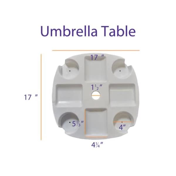 The Beach Umbrella Table Accessory is a great accessory to add to your umbrella pole for holding your belongings. It features 4 drink holders and 4 rectangle accessory holds. Includes one Beach Umbrella Table and two tightening screws