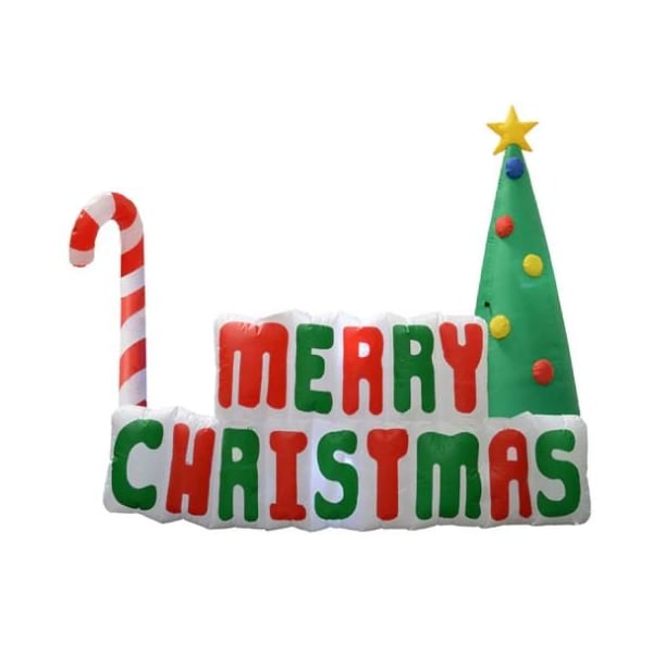 The Merry Christmas Inflatable will add a little Christmas magic to your yard with this joyful greeting inflatable. This 6ft long inflatable features light bulbs for nighttime display. Inflates in minutes with included fan and UL transformer and deflates fast for convenient storage.