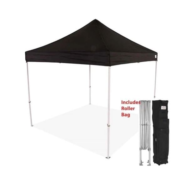 The 10 FT x 10 FT DS Pop up Instant Canopy with Roller Bag is perfect for portability and stability while staying within your budget. Includes Frame, Blacl Top, DS Roller Bag, and Rope & Spike kit