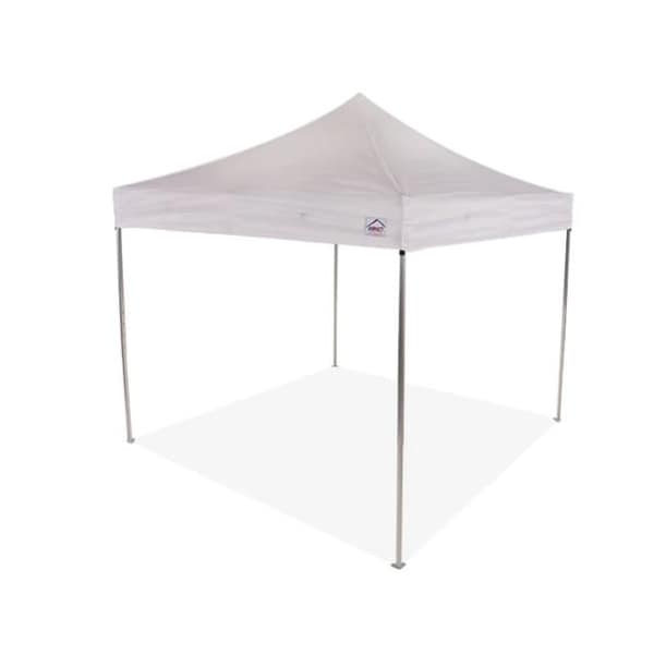 The 10 FT x 10 FT DS Pop up Instant Canopy with Roller Bag is perfect for portability and stability while staying within your budget. Includes Frame, White Top, DS Roller Bag, and Rope & Spike kit