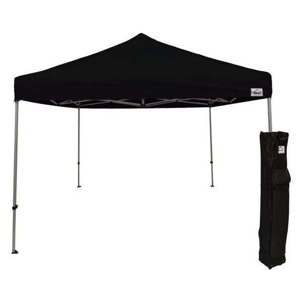 The Impact Canopy Evento Kit Instant Pop up Canopy is perfect for weekly use for events such as ballgames or business booths as well as being great for any outdoor activities. This kit includes 10x10 Texture Powder Coated Steel frame, Black 300 denier polyester fire retardant fabric top, Roller Bag, and rope & spike kit.