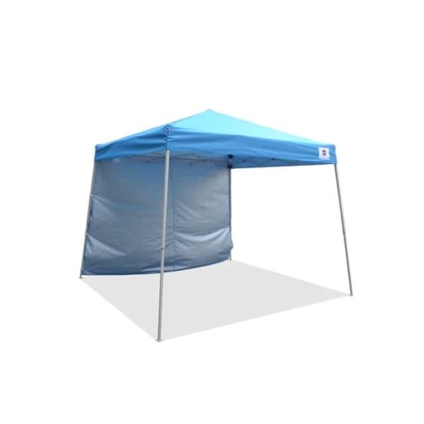 The sleek design oftheSlant Leg Canopy Tent is a great alternative to a straight leg pop up canopy when you want to present and upgraded look to your outdoor function. Great for outdoor activities such as a day at the beach, outdoor concert, farmers market, crafts fair, street fairs, tailgating or sporting events. Slant Leg canopies are best suited for everyday use during calm weather. The powder-coated steel frame is sturdy and durable yet lightweight making it easy to pack and transport. Total weight of slant leg canopy is 25 lbs. Includes Slant Leg Frame, Blue Top, One Side Wall, Carry bag, Rope and Spike Kit