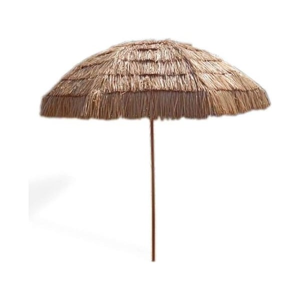 The Thatched Tiki Umbrella is a great temporary use umbrella for shade and decor. It is great hahawin themed party or if you would like to add a little flair to your patio area. Features include 8 FT Top Demension, Polyester fabric, Steel Frame Wooden Imitation Frame, and a Sand Auger Tip - Can be used in Sand or for a Patio Umbrella in an Umbrella Base.