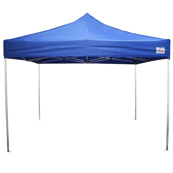 The Impact Canopy Ultra Light Aluminum Frame is the perfect canopy for a day at the beach or all day ballgames. It is perfect to display and market your products or activities in an outdoor environment.Includes 10x10 Straight Leg Lightweight aluminum frame, Blue 210 denier polyester Fire retardant top, Roller Bag and rope and spike kit