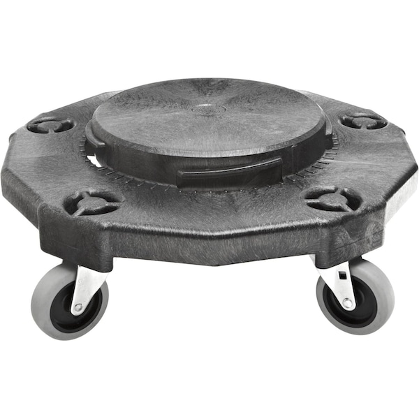 The Gator Dolly is a professional-grade solution for transporting large trash containers in commercial, industrial, and facility settings. Designed with convenience and strength, this dolly features a vented construction that prevents suction between the container and base. Eliminating suction allows custodial staff to easily remove and replace containers, saving time and reducing physical strain during daily operations. Built from structural foam molding, the Gator Dolly is highly durable. A heavy-duty design ensures that the Gator Dolly will withstand repeated use and heavy loads without cracking or warping. Its construction provides long-lasting performance, making it a cost-effective choice for facility managers and cleaning professionals who need reliable equipment. The dolly moves smoothly across floors without leaving scuffs or creating disruptive noise with five quiet, non-marking, swivel casters. Each 3-inch caster swivels easily, offering excellent maneuverability in tight spaces, crowded hallways, and busy work areas. This mobility ensures efficient waste transport while maintaining a quiet and clean environment and less physical strain for maintenance staff. The Gator Dolly securely attaches to standard round containers, including 20, 32, 44, and 55-gallon trash bins. Its stable fit provides the confidence needed when transporting heavy loads, preventing tipping or shifting during movement. For added convenience, replacement caster part #3333666 is available, making it simple to maintain the dolly and extend its lifespan without replacing the entire unit. With its vented design, structural foam durability, smooth-rolling casters, and secure container compatibility, the Gator Dolly provides a reliable, long-term solution for handling waste containers in any environment.