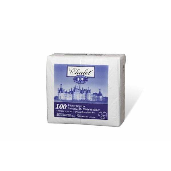 The Chalet dinner napkin measures 15 by 16 inches and is made from white 2-ply material for added durability and absorbency. It features a 1/8 fold design, suitable for dining settings requiring a compact and neat presentation. This napkin is ideal for use in restaurants, catering events, and home dining, providing a clean and classic appearance. Manufactured by Kruger, it offers reliable quality and standard dimensions for consistent use, available in a pack of 3000.