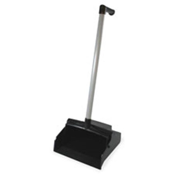 Lobby dustpan with L-grip features an easy-lock, two-way handle that locks conveniently in the upright position. Innovative footrest pads won't scratch or damage surfaces to safely clean all types of floors. Enhanced angle bottom prevents contained dirt and dust from falling out. Refined front edge makes picking up smaller items and dust easy to save you valuable time and effort. Large tray capacity picks up even more to prevent frequent emptying. Broom cleaning teeth quickly clean your broom to maximize your efficiency.