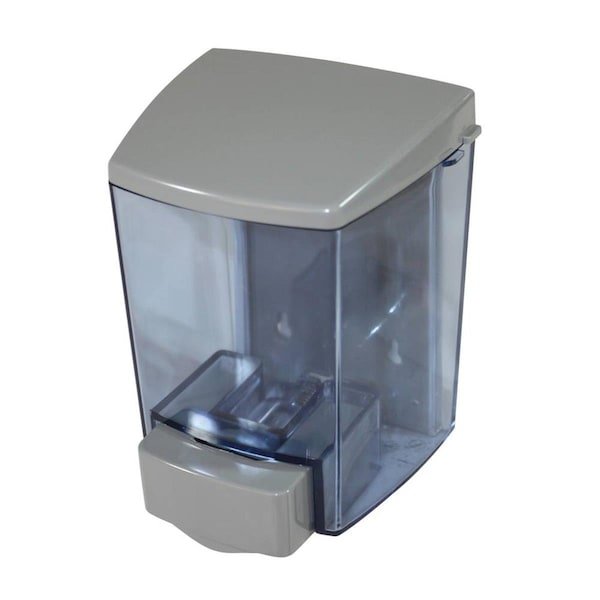 Dispenses approximately one cc per stroke. Tested and proven to work with antimicrobial, antibacterial and antiseptic soaps. Accommodates liquid and lotion soaps, except pumice. Unique water-resistant top, curved design, and see-thru tank. Large push bar meets ADA requirements. Removable backplate. Improved design eliminates soap waste.