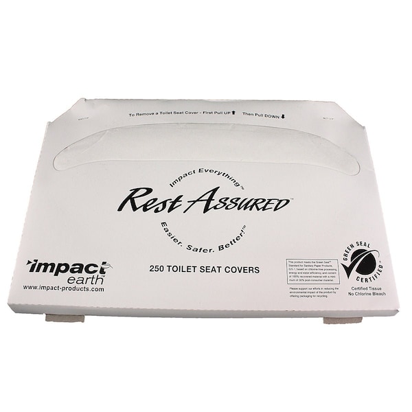 Rest Assured Green Seal Certified toilet seat covers provide reliable sanitary protection in restrooms while supporting environmental responsibility. Made from 100% recycled paper with 30% post-consumer content, these 1/2 fold covers are biodegradable, easy to use, and an eco-friendly choice for facilities.
