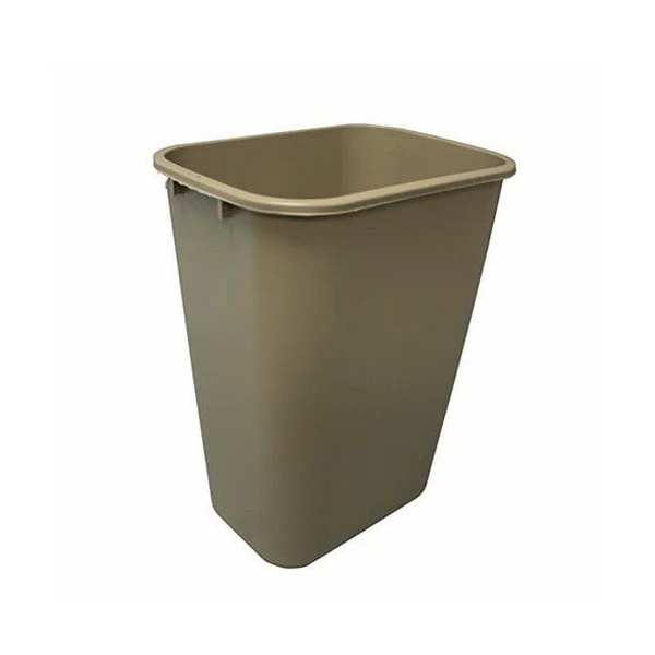 The Rectangular Soft-Sided Plastic 41 Quart Wastebasket with the smooth finished No Pinch'm design, won’t pinch maintenance staff during handling and offers seamless durability in beige. Featuring a seamless construction, this wastebasket will not dent, leak, or rust, making it ideal for long-term use in offices, schools, healthcare facilities, or homes. The high-quality polyethylene build offers superior strength while maintaining a lightweight feel for effortless movement. A rolled rim makes pick-up, emptying, and delivery smooth and convenient, while the compact 41-quart capacity provides plenty of room for trash without taking up excess space. This wastebasket complements any setting with simple functionality, neutral color, and dependable quality.