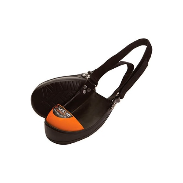 Impacto toes2go composite toe cap safety overshoes. Protects the toe area from accidental impact, crushing or stubbing. Made of flexible, pliable pvc. Perfect for visitors and temporary workers. Comfortably worn over dress shoes, running shoes, most booths and shoes with low heels. Fully adjustable straps with hook and loop closure. Threads under sole help prevent slipping. 100% waterproof, will not harden, stiffen or crack.