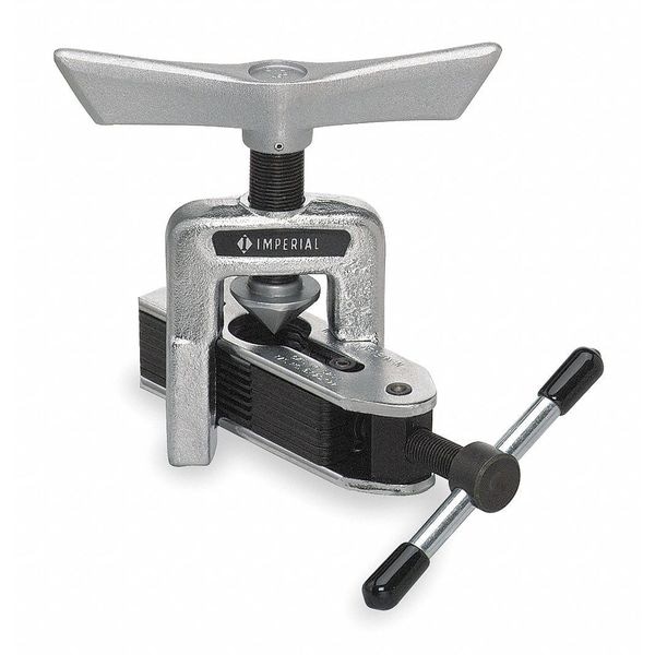 Flaring Tool, Product Type Flaring Tool, Compatible Tube Size 3/16 in, 1/4 in, 5/16 in, 3/8 in, 1/2 in, 5/8 in, Material Application Aluminum, Brass, Copper, Flare Type Single 45 Degree, Maximum Wall Thickness 0.035 in, Cone Type Faceted, Number of Sizes 7, Cone Material Steel, Finish Black Satin Chrome, Handle Design Large, Tool Weight 1.75 lb