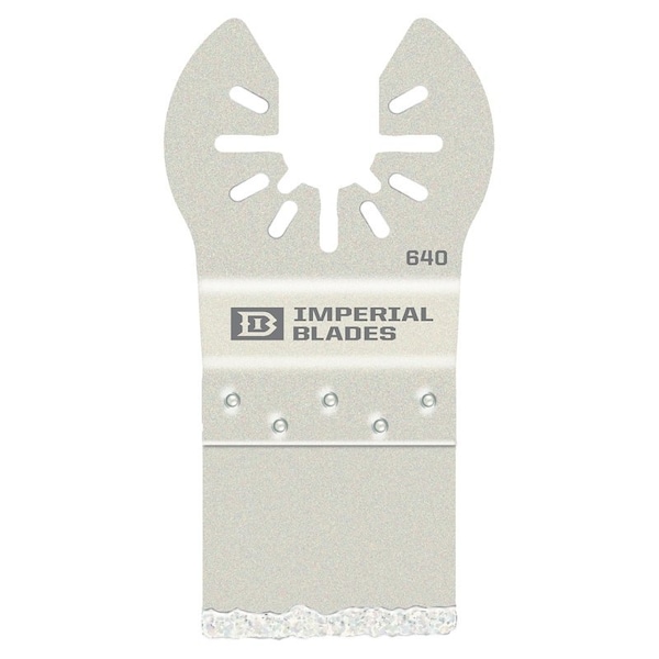 IMPERIAL BLADES ONE FIT Blade, 1 in Cutting Depth, Carbide, Applicable Materials Plaster, Porous Concrete, Tile Grout, Black, 1 in Length, 114 in Width, 01 in Thickness, Suitable for BLACK DECKER, Chicago Electric, Craftsman, DeWALT, Dremel, Metabo, Genesis, Hitachi, Makita, Masterforce, Milwaukee, Performax, Porter Cable, Ridgid, Rockwell, Ryobi, Worx, Tool Shop, Fein MultiMaster, Kobalt, AEG, Hyper Tough and Mastercraft Oscillating Tools