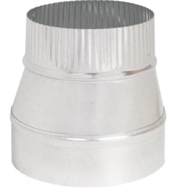 Features 24 Gauge. Galvanized Taper Reducer. Small End Crimped. Size - 5 x 4 in. Item Dimension - 5.25 x 5.25 x 5.75 in. Item Weight - 0.55 lbs.
