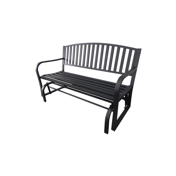 Four Seasons Courtyard, KD Construction, Steel Bench Glider, Steel Frame Cast Iron Back With Black Powder Coating Finish, Assembled Size 5039W x 2638D x 3346H, 500 LB Weight Capacity