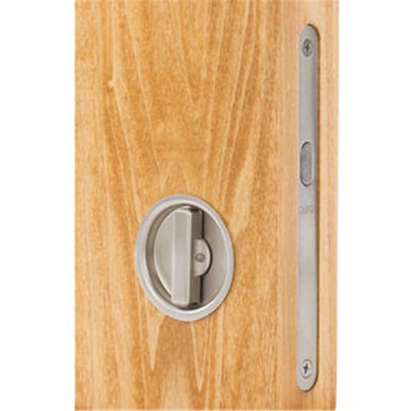2 in. Backset Sliding Pocket Door Mortise Lock with Round Trim, Satin Stainless Steel