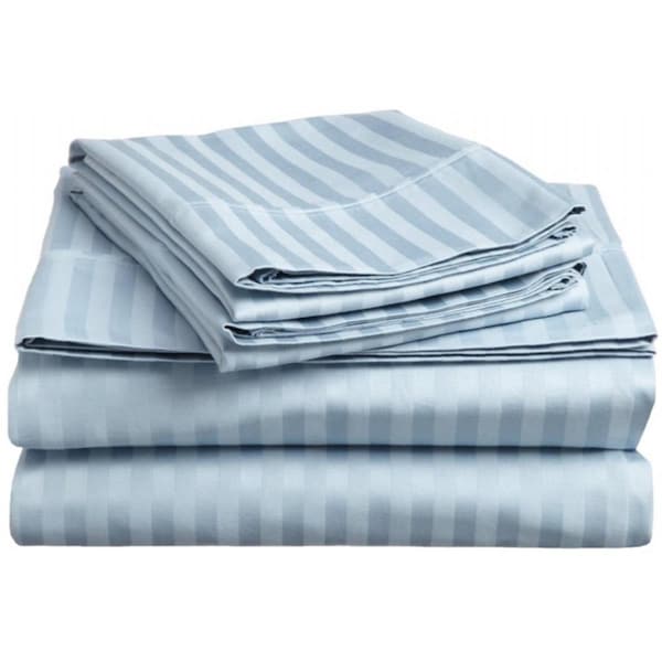 400 Thread Count Egyptian Cotton Queen Sheet Set Stripe Light Blue