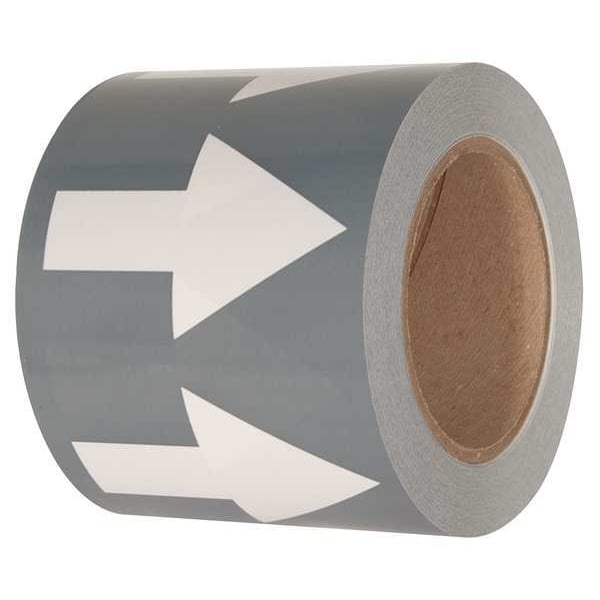 Arrow Tape, Pipe Marker Legend Arrow, Legend Text Color White, Background Color Gray, Pipe Marker Mounting Style Adhesive Pipe Marker, Self-Adhesive Pipe Marker Format Roll Form, Continuous, Length 1,296 in, Width 4 in, Thickness 0.004 in, Roll Length 108 ft