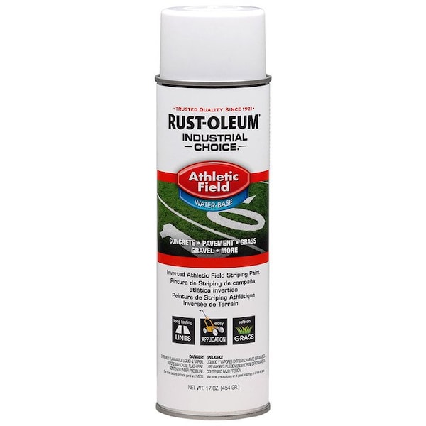 Easily mark athletic fields, playgrounds, golf courses and more with Rust-Oleum Industrial Choice AF1600 Athletic Field Striping Paint. This water-based paint produces durable, long-lasting lines that withstand weather and wear. Sprays upside-down for easy use.