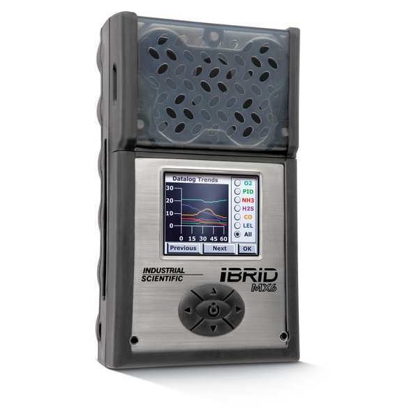 MX6 iBrid Multi-Gas Detector, IP64, Audible, Vibrating, Visual, LCD, 36 hr Battery Life