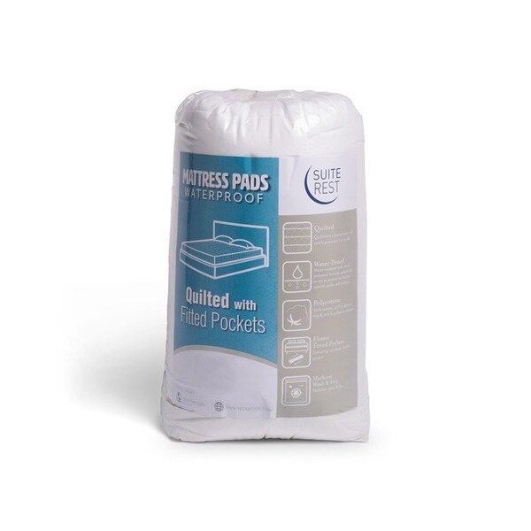 This 60 x 80 x 10 mattress pad is water resistant, 50 cotton, 50 polyester quilted top with 100 polyester bottom specifically to act as a barrier against spills and soiling 10 SkirtDrop 7 oz fill plush feel Fitted Standard Size Machine Washable and Dryer Safe Water Resistant Replaces 1562230